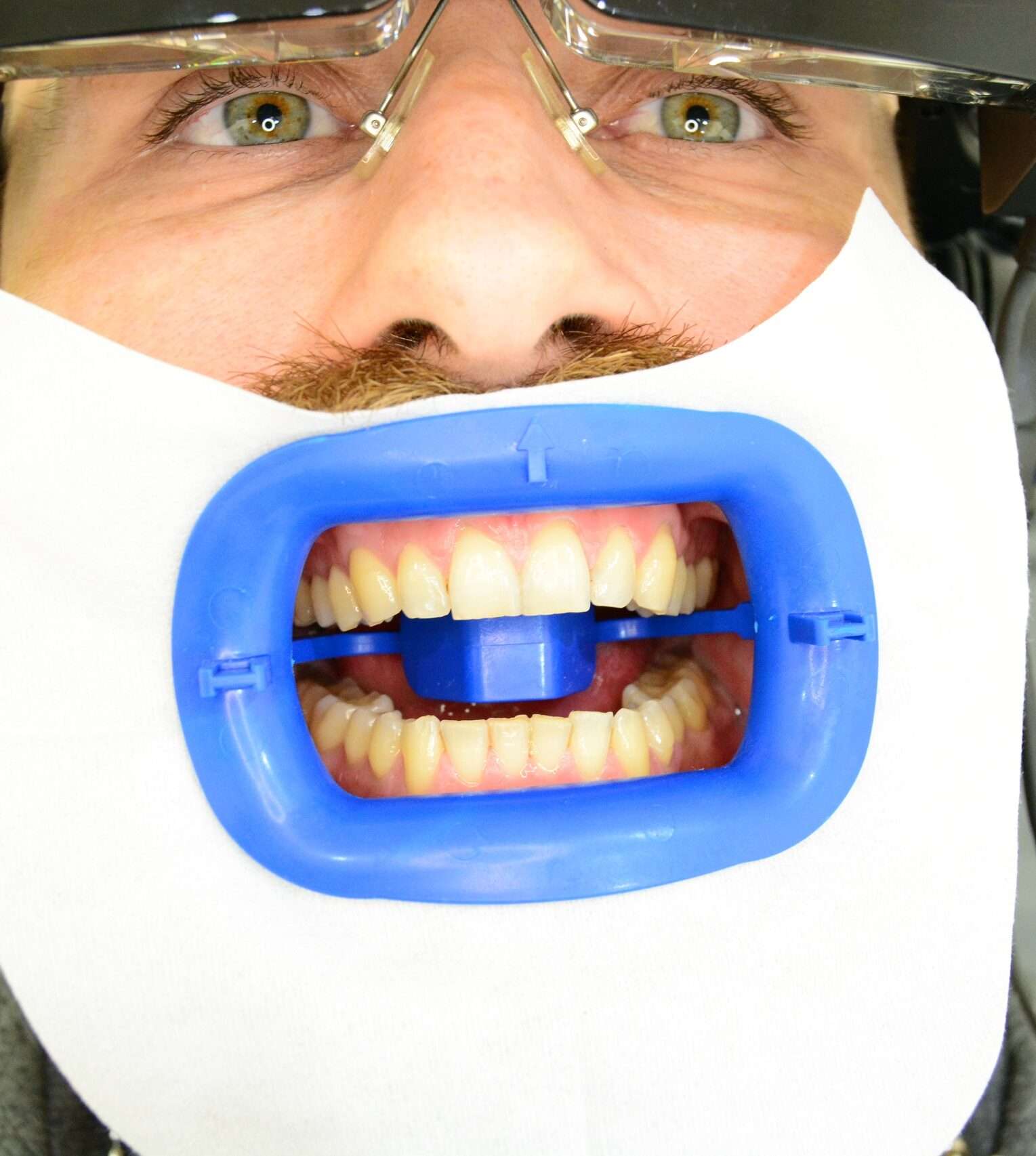 - Proteger de forma absoluta los tejidos blandos del paciente (labios y encías) con un protector bucal y una pasta gingival.